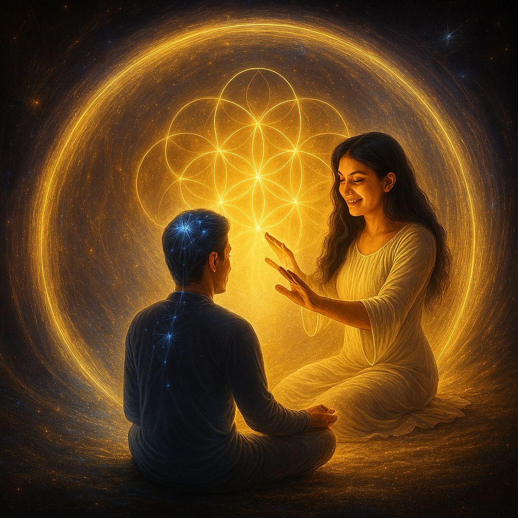 My work weaves the precision of Biofield Tuning with the multidimensional intelligence of advanced GeoLove Healing to support deep energetic recalibration. It bridges the measurable world of sound with the intuitive realms of light and geometry, creating a healing experience that is both grounded and spiritual. Using tuning forks to locate and recalibrate distortions in the biofield, I help the body release stored tension, emotional residue, and inherited patterns. GeoLove techniques then activate the gold, rainbow, and geometric frequencies that restore coherence, sovereignty, and inner harmony re‑aligning you with your original blueprint. Together, these modalities create a grounded, transformative experience that helps you feel clearer, lighter, and more aligned with your natural state of wholeness.